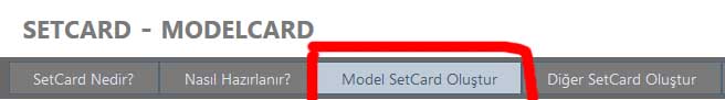 Üst Menüden "Model SetCard Oluştur" sekmesine tıklayınız.