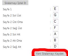 -Tüm pozisyonların karşılıkları girildikten sonra "Yeni Sıralamayı Kaydet" sekmesine tıklayarak değişim işlemini tamamlıyoruz.