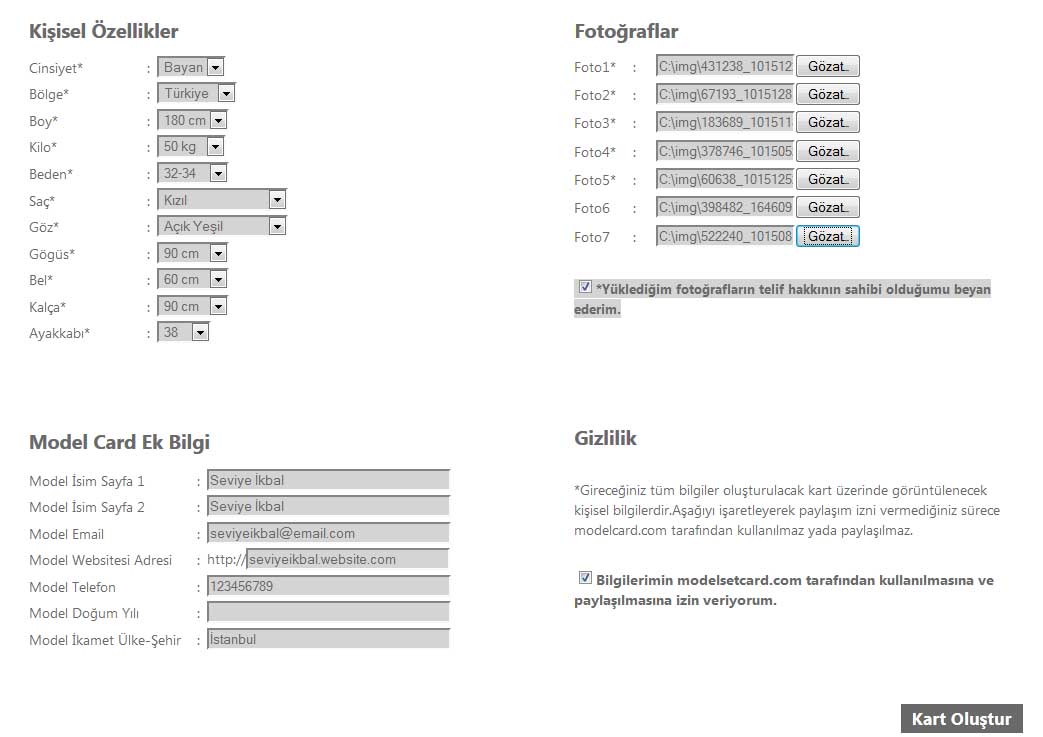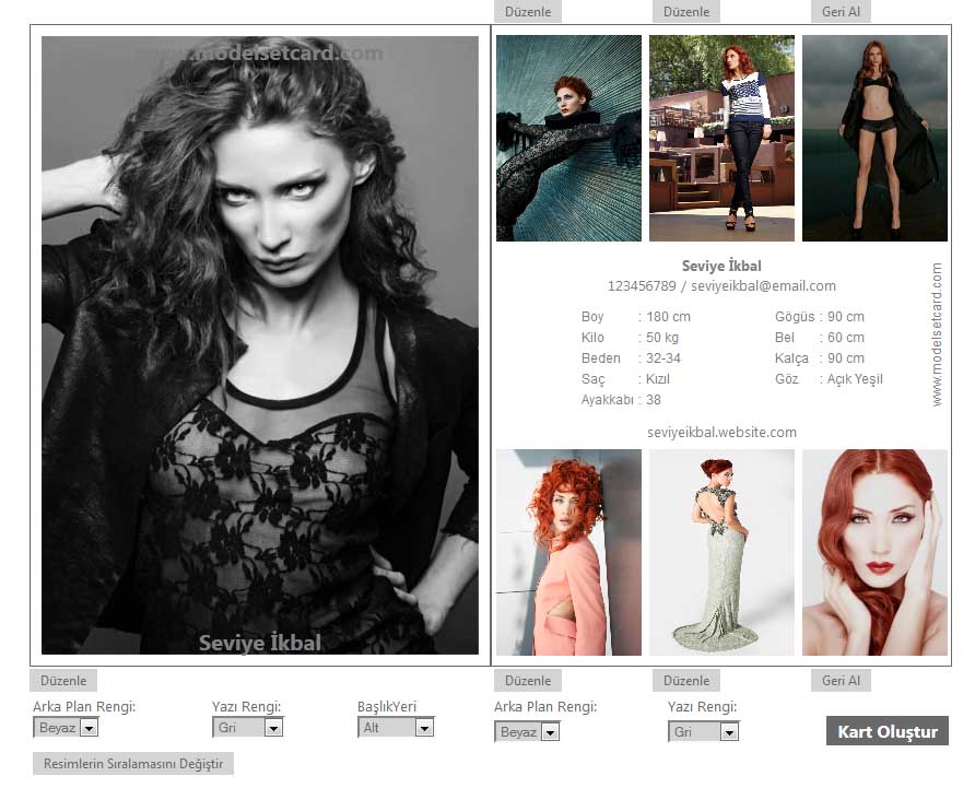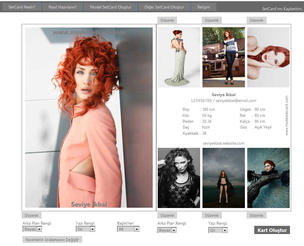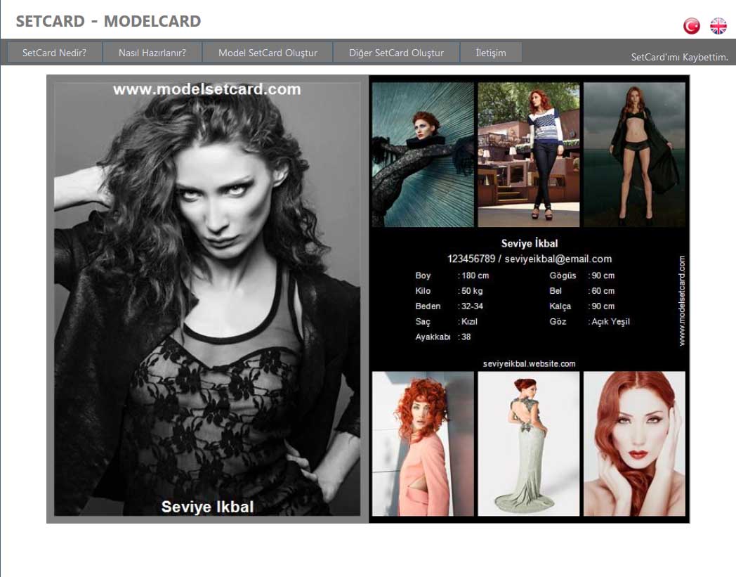 bilgilileri saklanarak modelsetcard.com da örnek olarak kullanılabilir yada