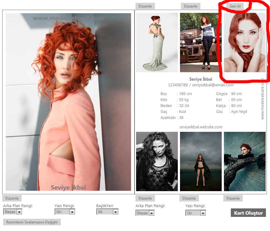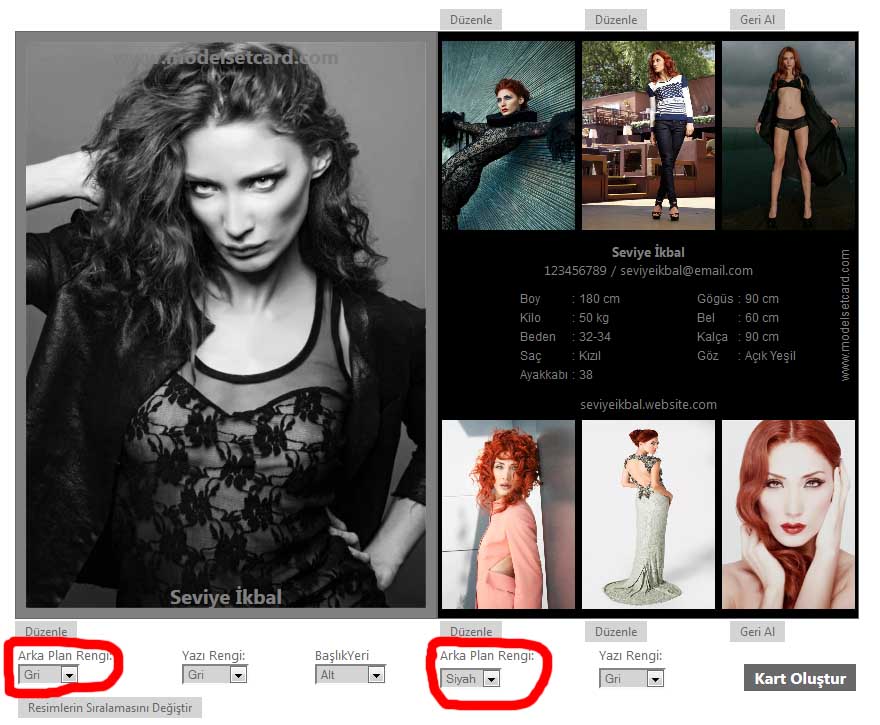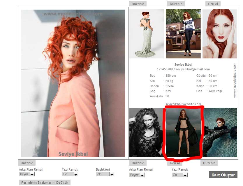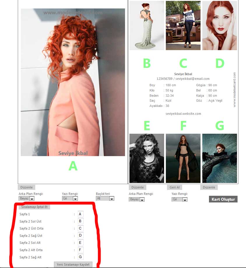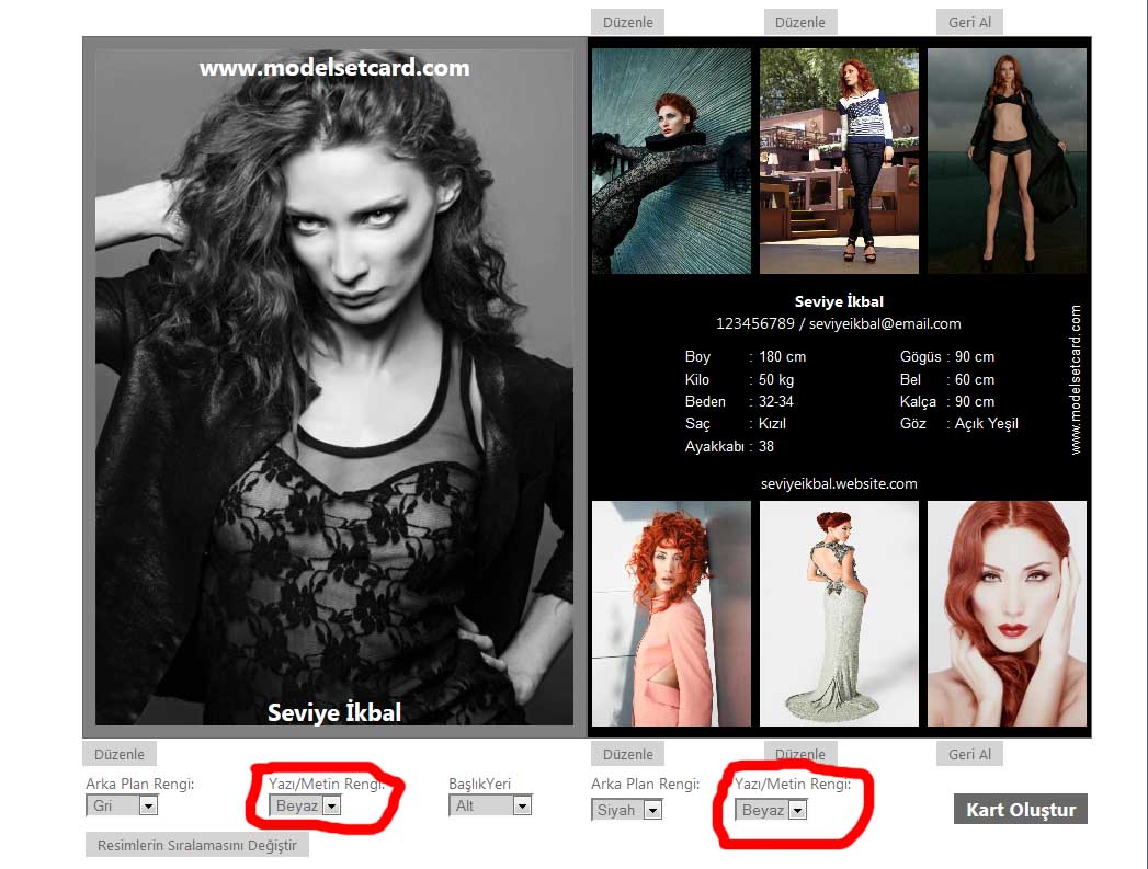 bilgilileri saklanarak modelsetcard.com da örnek olarak kullanılabilir yada