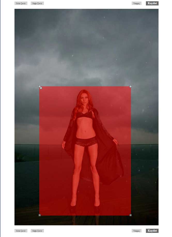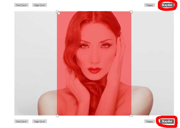 ekran ile resmin setcard'ımızda görünmesi istediğimiz bölümünü işaretliyoruz ve